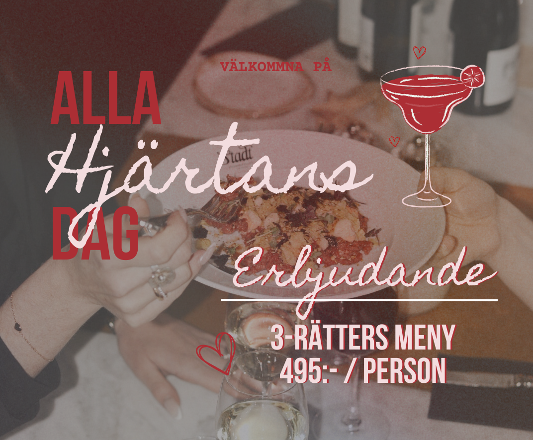 Alla hjärtans dag handlar om en sak. Att ta hand om varandra. Kvällen till ära bjuder vi på en trerätters meny för endast 495 kr per person. En perfekt kväll för dig som vill äta gott, skratta mer och bara njuta tillsammans. Säkra din plats redan idag!